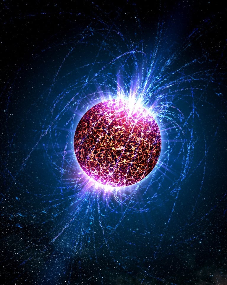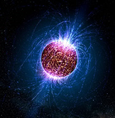 The outer layers of the star are flung off into space, leaving a tiny yet extremely powerful object composed entirely of neutrons. What’s more, a neutron star may have a magnetic field 100-million to 1 quadrillion times more powerful and a gravitational field 200 billion times more powerful than that of the Earth's!